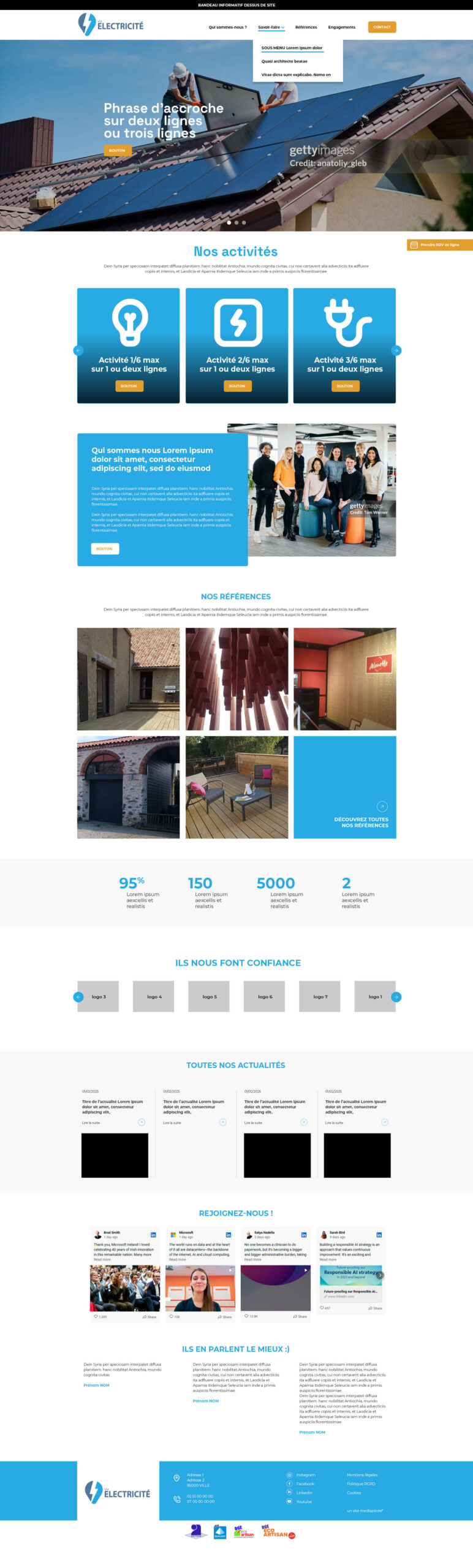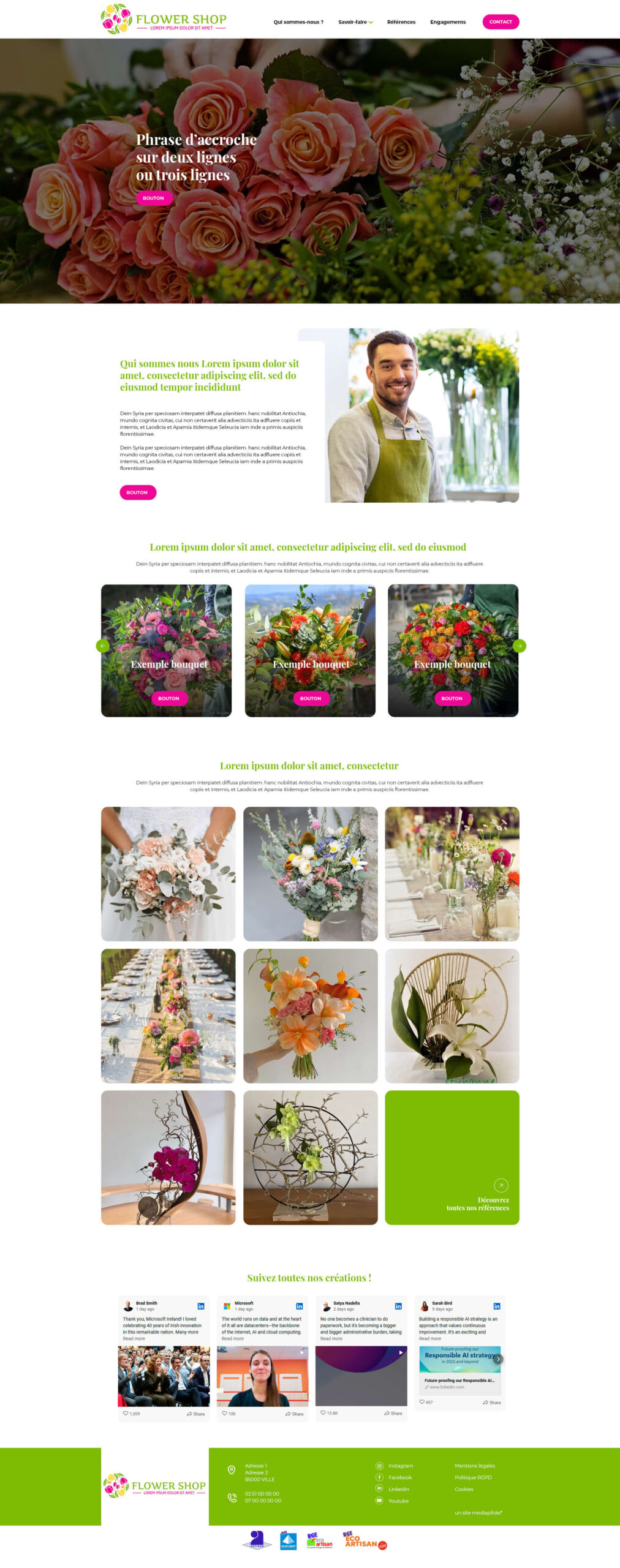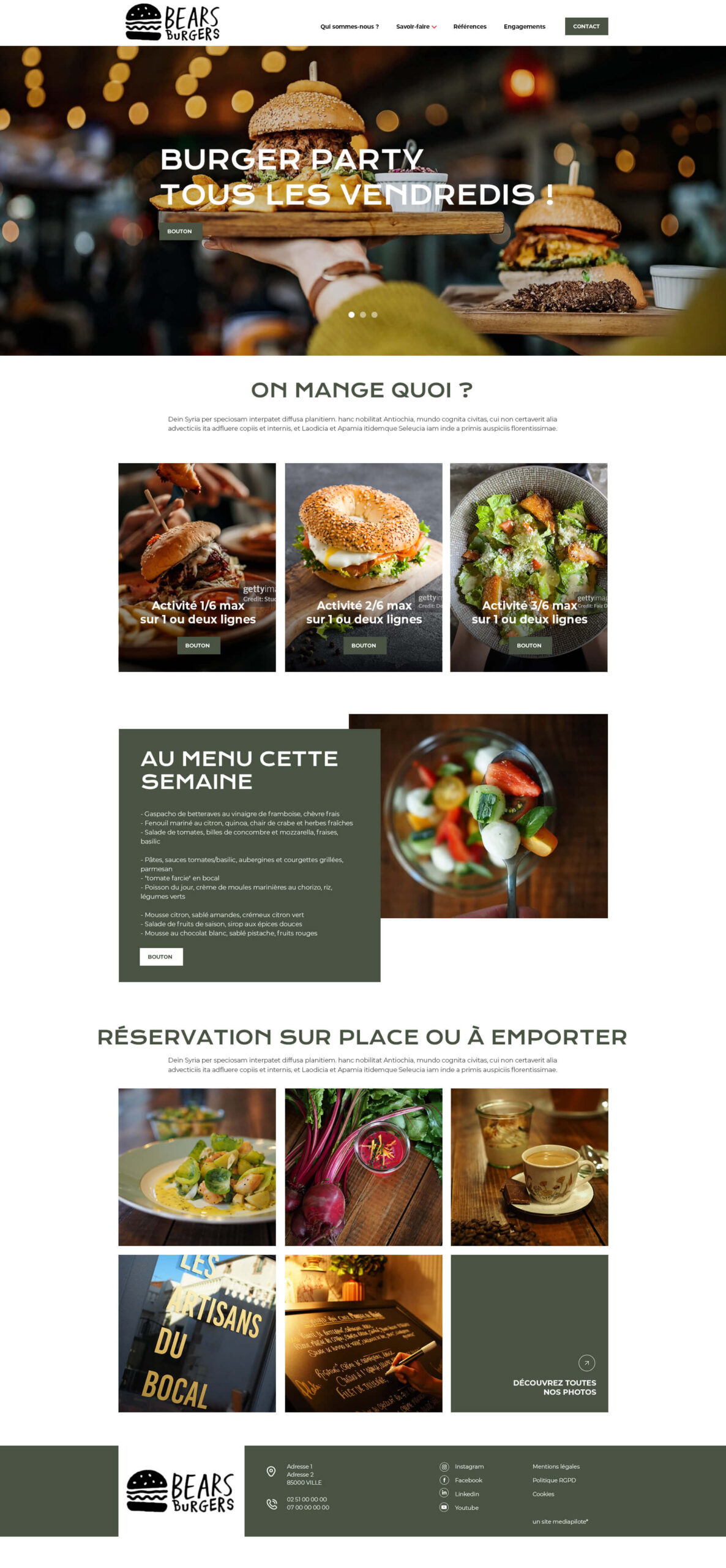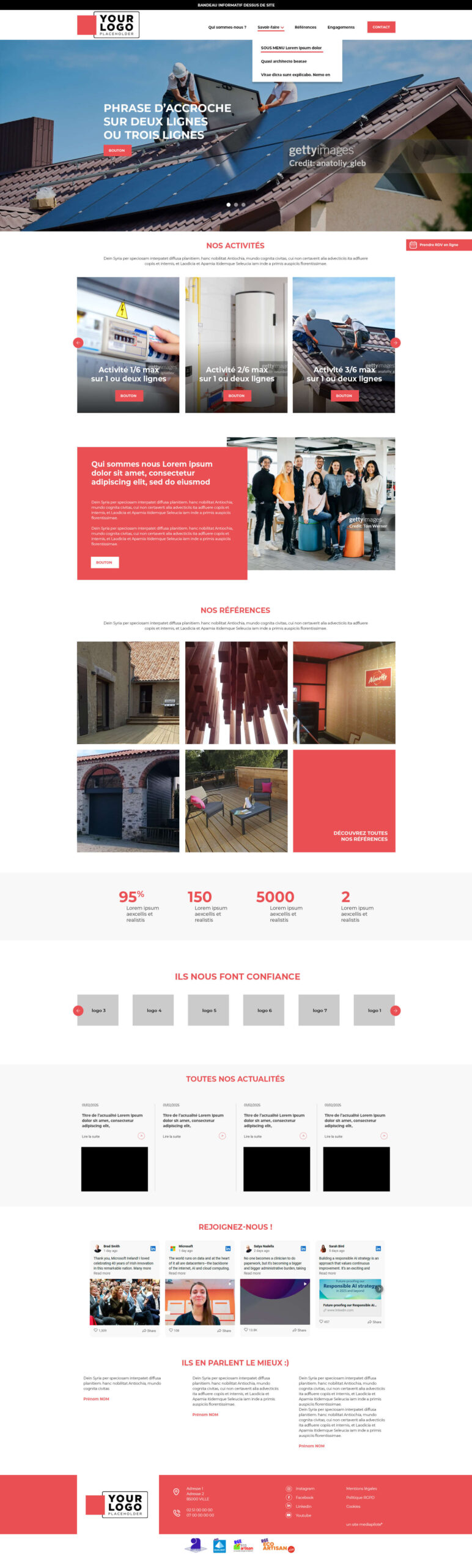 - Certaines pages sont construites sur des templates fixes afin de faciliter l’intégration des contenus pour le client.